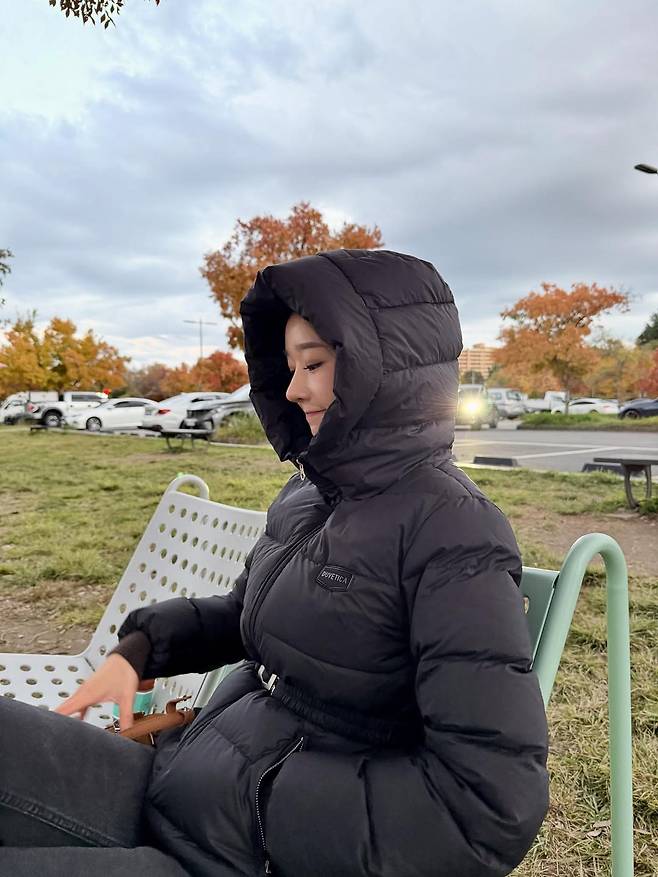 공개된 사진 속 그녀는 쌀쌀해진 날씨에 맞춰 검은색 패딩 점퍼를 입고 있습니다. 하지만 두꺼운 패딩을 입었음에도 불구하고,