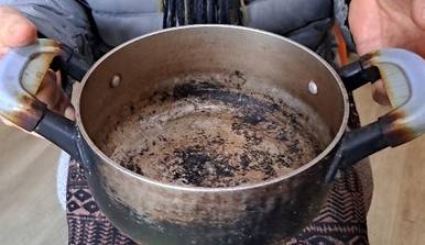 물과 사과 하나 분량의 껍질, 식초 반 컵을 넣고 5분간 끓여보자. 사과의 구연산 성분이 탄 자국을 녹여준다. 사과가 없을 때는 물과 식초를 1:1 비율로 섞은 식초물을 끓어오를 때까지 15~20분 정도 끓인다. 물을 버리고 수세미로 문질러주면 된다.