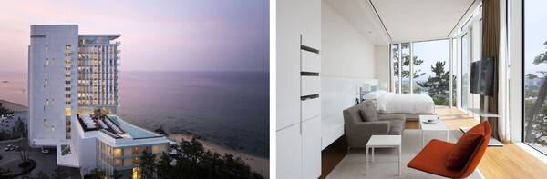 강릉은 KTX가 개통되면서 접근성도 편리해졌고 바다를 즐기고 강릉을 놀러 가는 사람들이라면 한 번쯤은 가보고 싶은 호텔이라고 하는데요. 이 아름다운 호텔의 디자인은 프리츠커 상을 받은 세계적인 건축가가 설계했다고 하고 일출도 방에서 볼 수 있을 만큼 뷰까지도 맛집이라고 해요.