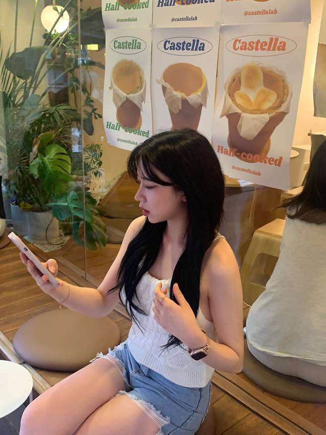 하의는 위에 코디와 다르게 조금 더 짧은 찢청 반바지를 코디해 주었답니다
