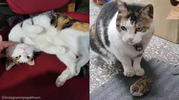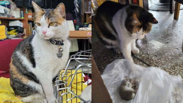 부산의 한 바이크 가게에 살고 있는 고양이 '삼색이'가 물어온 자그마한 물체가 네티즌들에게 웃음을 줬습니다.