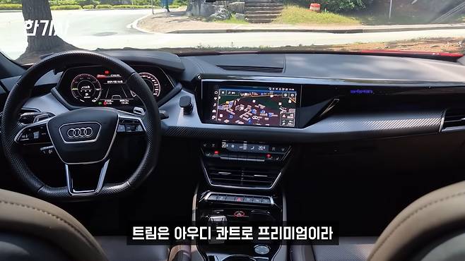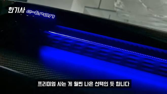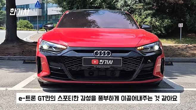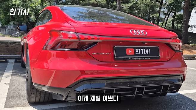 이제 아우디 e-트론 GT의 장점을 말씀드리겠습니다. 첫째로 에어 서스펜션으로 인한 승차감 개선입니다. 콰트로 프리미엄 모델에 어댑티브 에어 서스펜션이 적용되는데, 단거리든 시내 주행이든 허리가 전혀 아프지 않습니다.