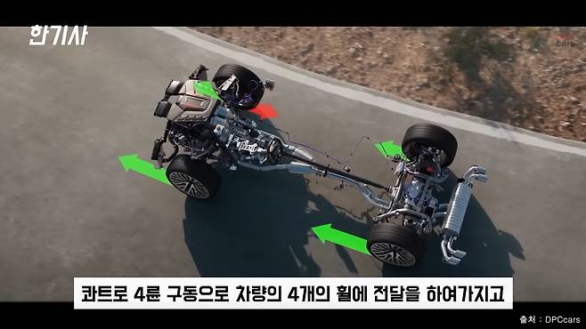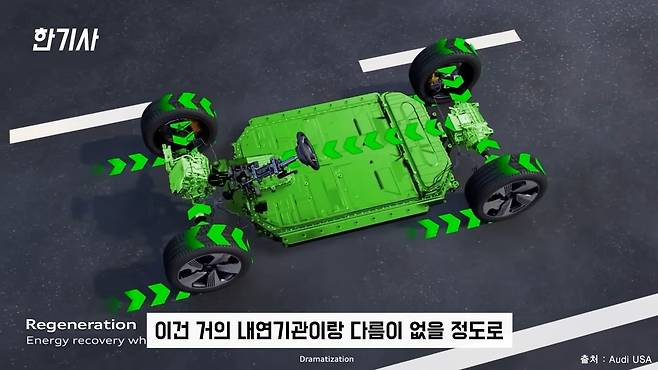 둘째, 콰트로 4륜 구동입니다. 두 개의 전기 모터에서 생성되는 동력을 네 바퀴에 전달해서 역동적이면서도 효율적인 드라이빙 퍼포먼스를 제공하죠.