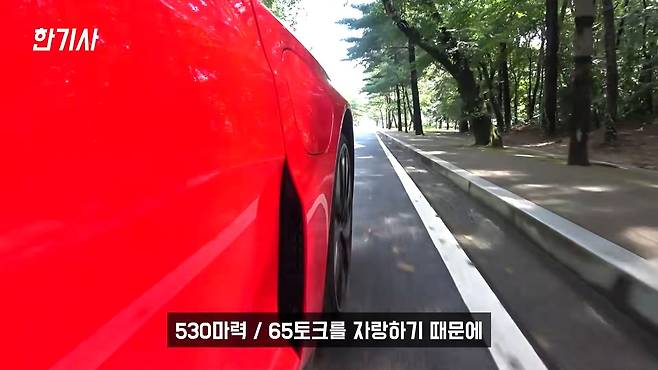 출력도 정말 강력합니다. 부스트 모드를 사용하면 530마력에 65토크를 자랑하는데요, 공차 중량이 2.3톤이 넘는 차량임에도 제로백이 4.1초입니다. 일반인에게는 과하고 넘치는 출력이라고 생각합니다.