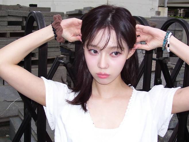 헤어는 잔머리를 그대로 둔 내추럴한 다운스타일로, 얼굴 라인과 무드를 부드럽게 감싸주며 소녀미를 배가시켰고요.