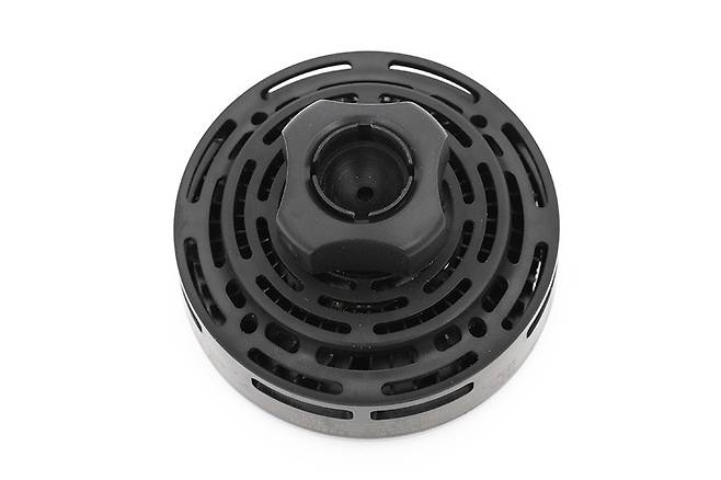 뒷면을 보면 전체적으로 송풍구가 무수히 많이 뚫려 있는 것을 볼 수 있다. 가운데 부분에는 볼헤드를 연결하기 위한 연결 홀더도 보인다.