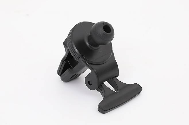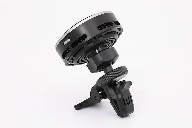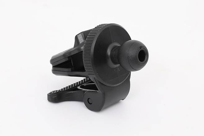 모락 조나 A9 Qi2 차량용 거치대와 함께 제공되는 송풍구 클립은 본체와 연결되는 방향에 볼헤드가 나와 있어서 각도 조절이 원활하다. 반대편에는 자동차 송풍구 날개에 거치대를 고정하는 집게가 자리 잡고 있다.