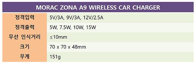 모락 조나 A9 Qi2 차량용 거치대는 세계무선충전협회(WPC)의 최신 무선 충전 표준인 Qi2를 채택해 최대 15W의 출력으로 고속 충전이 가능하다. 또한 맥세이프와 완벽 호환되기 때문에 스마트폰의 거치와 분리가 별도의 과정 없이 간편하게 이루어진다. 이와 함께 고속 충전 시 필연적으로 발생하는 발열을 펠티에 소자와 히트싱크 및 쿨링팬의 조합으로 해결했으며, 소음도 거의 발생하지 않는다. 그뿐만 아니라 과전류와 과충전, 과전압 보호 및 과열 방지 설계로 더욱 안심하고 사용할 수 있다.