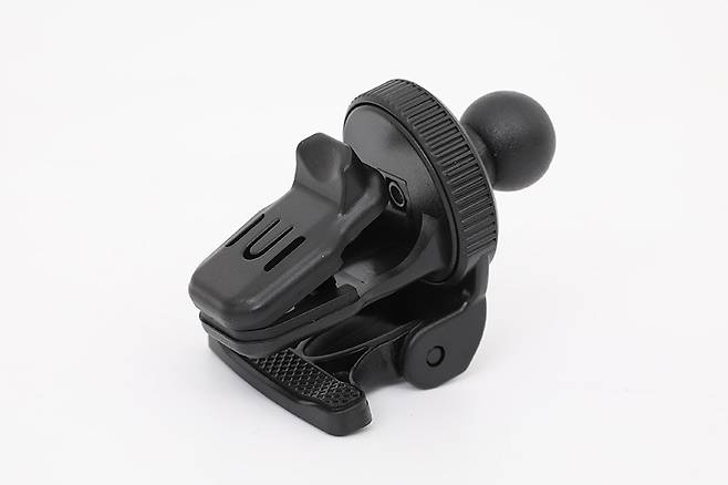 클립을 본체 뒤에 결합하면 다음과 같은 모습이 된다. 볼헤드 타입이기 때문에 회전이나 각도 조절이 자유로우며, 집게 부분도 360도로 회전할 수 있는 구조여서 더욱 다양한 각도로 설치 가능하다.