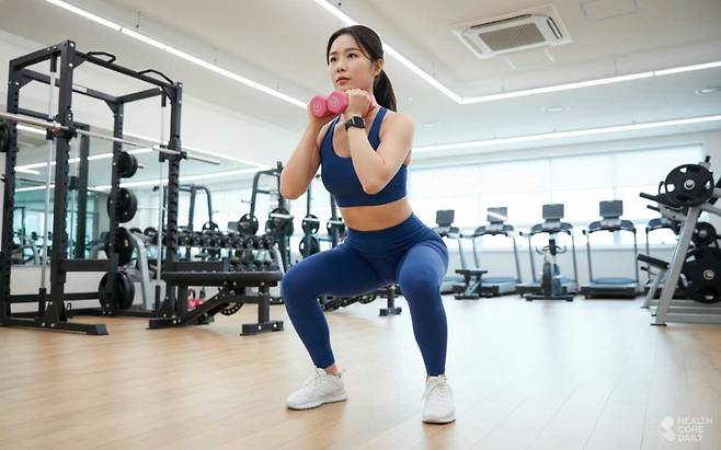 프런트 스쿼트는 무릎과 엉덩이의 깊이가 중요하다. 너무 얕게 앉거나 상체가 기울어지지 않도록 신경 쓰며 운동하자. 초보자는 가벼운 아령부터 시작해 점차 무게를 늘려가는 것이 좋다.