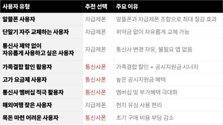 - 자급제폰 선택이 유리한 경우: