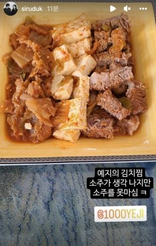 앞서 박휘순은 자신의 인스타그램 스토리에 “예지의 김치찜. 소주가 생각나지만 소주를 못 마심”이라는 메시지와 함께 사진 한 장을 올렸다.