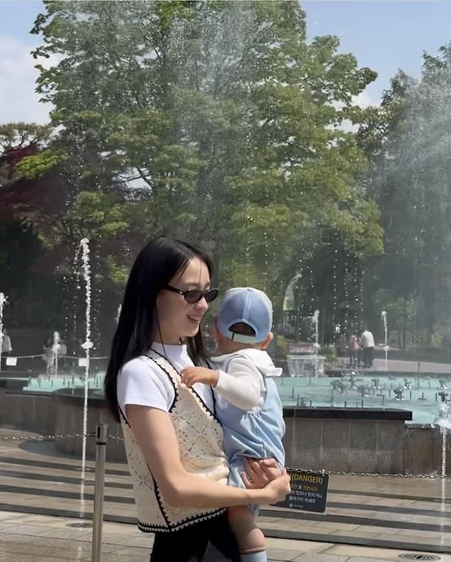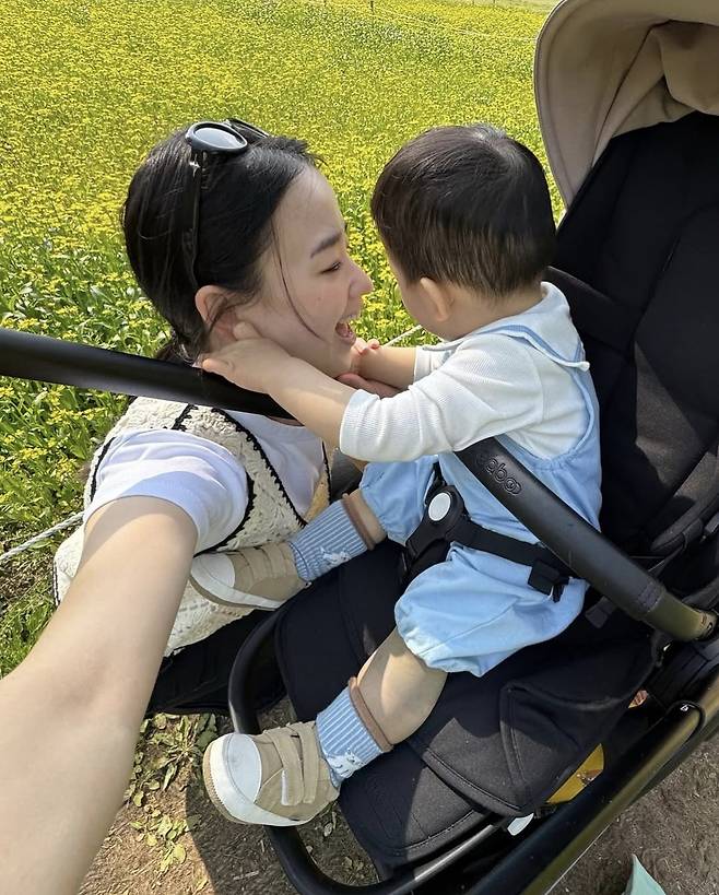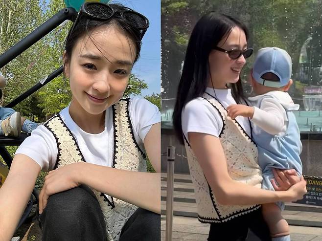 손연재는 아들과 함께한 공원 나들이에서 또 한 번 ‘워너비 육아맘룩’을 선보였습니다.