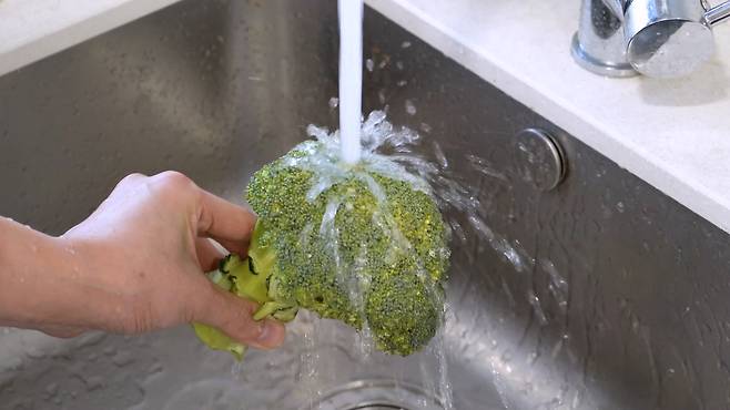이렇게 브로콜리를 씻으면 꽃봉오리 사이에 꼈던 이물질을 모두 빼고 깨끗하게 드실 수 있어 좋아요!