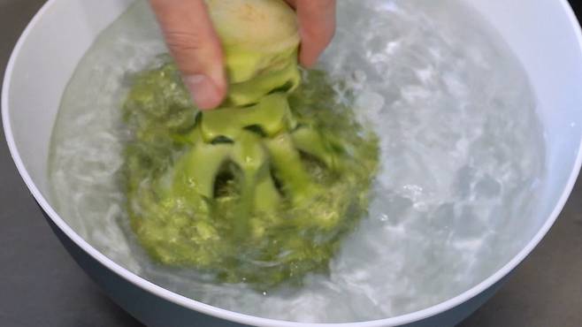 여기에 브로콜리를 10분 이상 담가 주세요. 그러면 꽃봉오리가 물을 머금고 활짝 열리게 된답니다.