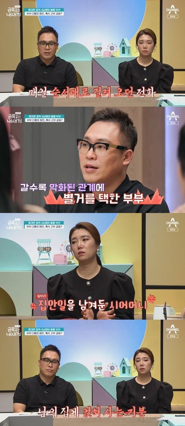 스튜디오에서 아빠는 "결혼 초부터 고부 갈등이 심했다. 제가 회사 가고 9시만 되면 순서대로 전화가 왔다. 와이프 전화 오고, 엄마 전화 오고. 그때는 같이 살았고, 그렇게 1년을 지냈다"며 "너무 고부 갈등이 심해서 와이프랑 1년 정도 별거를 했다. 와이프는 처가에 가 있었다"고 떠올렸다.