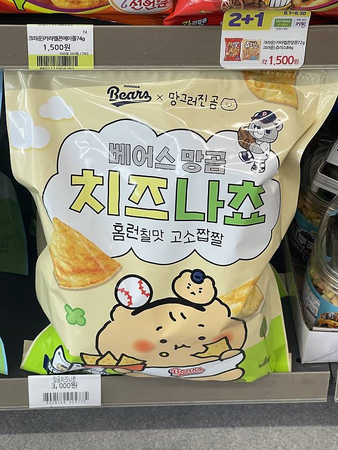 짭짤하고 고소한 베어스망곰 치즈나쵸는 먹을수록 썬칩대파치즈맛과 닮았어요. 맥주랑 잘 어울려요.