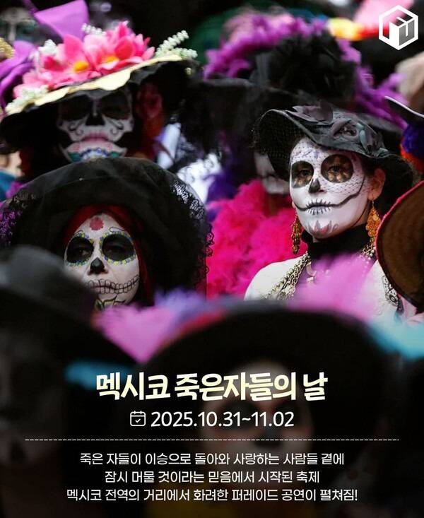 멕시코를 대표하는 축제 중 하나인 '죽은자들의 날' 입니다. 죽은자들의 날 축제는 죽음을 받아들이는 멕시코인들의 인식과 풍습이 그대로 녹아있는 축제인데요. 죽은 자들이 이승으로 돌아와 사랑하는 사람들 곁에 잠시 머물다 갈 것이라는 믿음에서 시작된 축제이기 때문입니다.