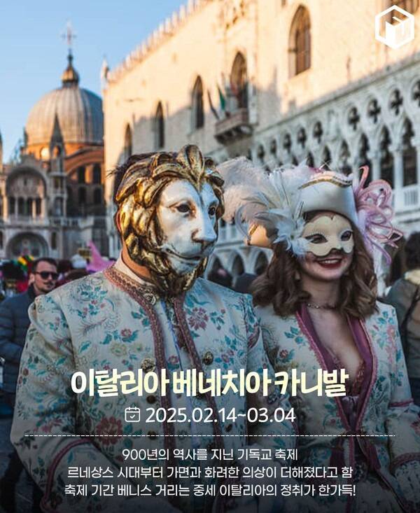 900년의 역사를 지닌 기독교 축제, 이탈리아 베네치아 카니발은 매년 2월에서 3월 사이, 사순절 직전까지 약 2주간 개최됩니다. 베네치아 카니발은 금욕, 금식 등 경건하게 지내야하는 사순절 기간을 앞두고 기름지고 맛있는 음식을 마음껏 먹고 마시는 사육제에서 발전한 축제입니다.