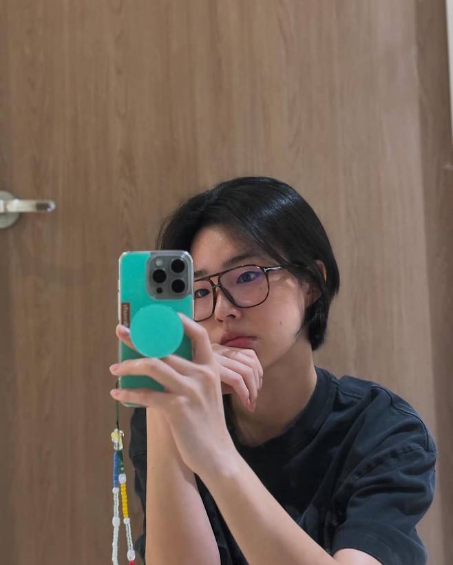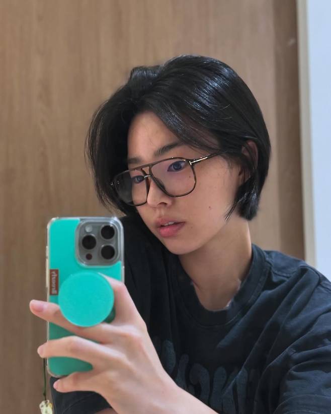 완전 생얼 + 뿔테안경 + 보브숏컷으로