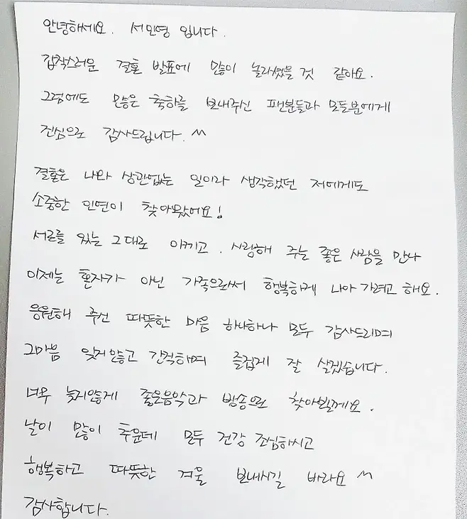 지난달 그녀는 개인 SNS에 “결혼은 나와 상관없는 일이라 생각했던 저에게도 소중한 인연이 찾아왔다”라는 내용이 담긴 자필 편지를 통해 팬들에게 결혼 소식을 전했다.
