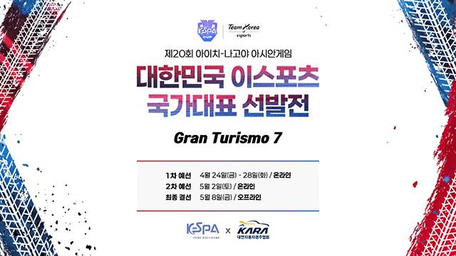 한국e스포츠협회(KeSPA)가 대한자동차경주협회(KARA)와 함께 24일(금)부터 2026 아이치-나고야 아시안게임 ‘그란 투리스모 7(Gran Turismo 7)’ 종목 국가대표 선발전에 돌입한다.