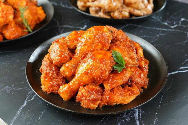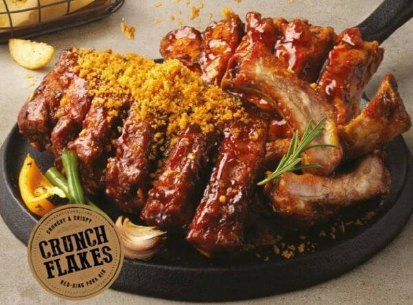 bhc치킨은 ‘레드킹폭립’을 출시했다. 폭립(돼지고기 등갈비를 양념해 오븐에 구운 요리)을 튀긴 뒤 레드킹 소스와 버무리고, 크런치 플레이크를 얹은 메뉴다. 기존 오븐식 조리 폭립 대비 겉은 바삭하고 속은 부드럽다. 국내산 통감자를 한입 크기로 잘라낸 감자튀김인 ‘웨지감자’도 만날 수 있다. 사이드 메뉴 ‘치킨스넥’, 고추장으로 조미한 닭을 구운 ‘고추장 직화구이’도 출시됐다. 레드킹폭립의 가격은 28,000원이다.