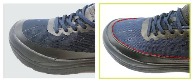 홑겹이었던 내피는 3중구조로 안감을 더해 내구성을 높였습니다. 가장 두드러진 차이는 날염(염색)처리한 부분을 모두 소가죽으로 교체했다는 점입니다. 신발을 오래 신으면 날염한 부분이 오래 벗겨지거나 쉽게 긁히는데 가죽은 그런 우려가 없습니다.