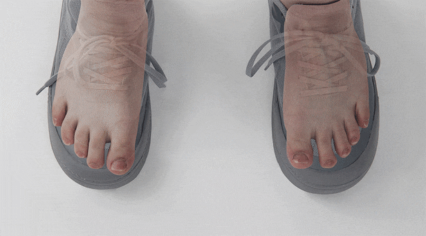 물컹슈즈 3.0은 요즘 유행하는 어글리 슈즈에서 착안한 제품입니다. 등산화 같은 다이얼 방식으로 신고 벗기가 편합니다. 다이얼이 발등을 조여줘, 발가락이 자연스럽게 벌어져 발가락 휨 현상을 막아주죠. 신었을 때 발가락을 펼쳐도 될 정도로 폭이 넉넉합니다. 발 볼이 넓은 사람도 부담 없이 신을 수 있죠.