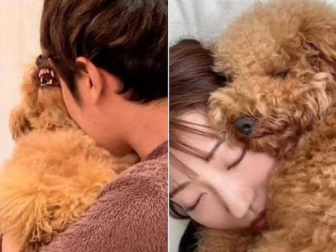 반면 엄마 품에 안긴 강아지는 언제 그랬었냐는 듯이 조용해지는 것이 아니겠습니까. 엄마에게는 적극적으로 와락 안기기까지 하는 강아지 모습이 웃음만 나옵니다.