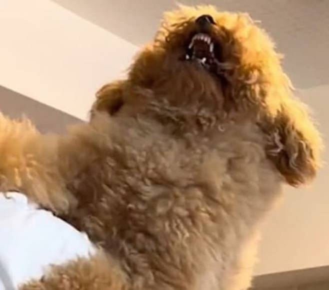 공개된 영상 속에서 강아지는 아빠가 품에 안아주자 안기기 싫었는지 으르렁거리며 이빨을 드러냈습니다.