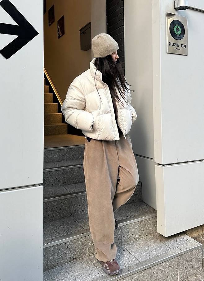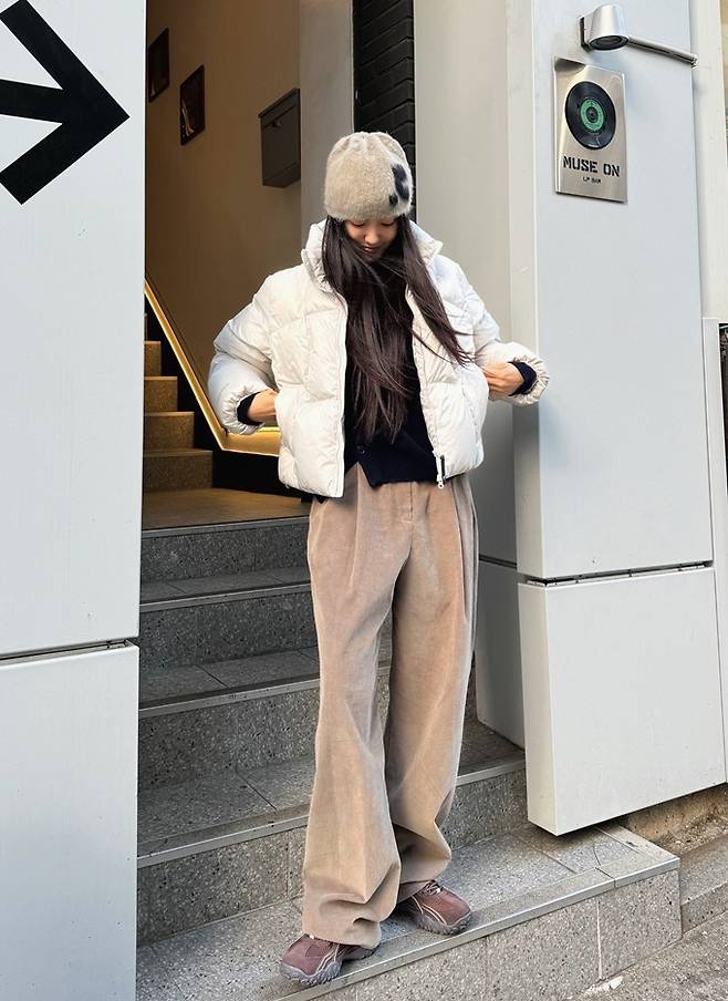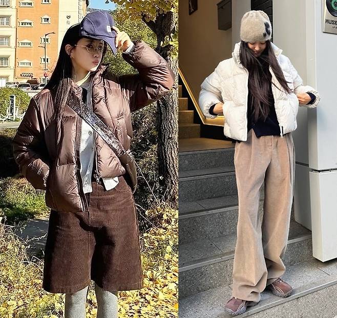 공개한 사진에서 효민은 미디 길이의 브라운 골덴 스커트에 브라운 숏패딩을 걸친 톤온톤 스타일의 패딩룩과 화이트 숏패딩에 카멜 컬러의 와이드 핏 팬츠를 착용한 패딩룩으로 힙하면서도 스타일리시한 겨울 스타일을 선보였다.