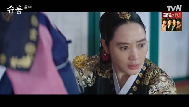 10월 30일 방송된 tvN 토일드라마 ‘슈룹’ 6회(극본 박바라/연출 김형식)에서 중전 임화령(김혜수 분)은 원손이 정말 위협받고 있음을 알고 경악했다.