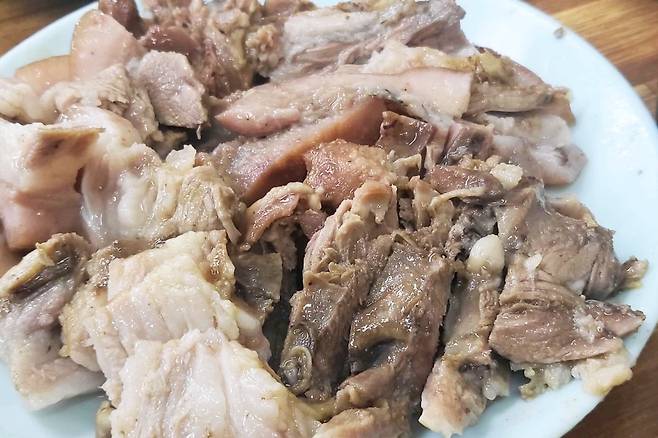 봉천동에 있는 '산골'은 봉천중앙시장 안에 자리 잡고 있습니다. 노포 식당으로 정겨운 분위기가 풍기는 곳이죠. 이곳은 원래 순댓국, 내장탕, 머리 고기, 오소리 등을 판매하는 곳이지만 '이모카세'로 소문나기 시작했는데요. 모둠 주문 시 푸짐한 양의 돼지고기를 맛볼 수 있습니다. 저렴한 가격으로 푸짐하게 즐길 수 있어 항상 손님이 많은 곳인데요.