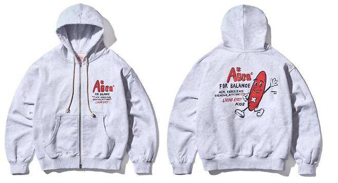 에이카화이트 제품이고, 완전 귀여운 소세지가 그려져있는 후드집업이에요!