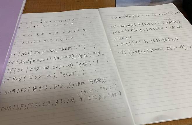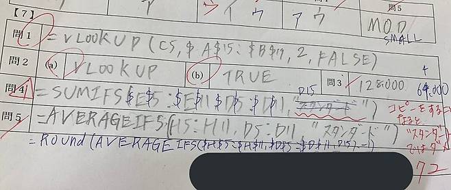 학교에서 엑셀 시험 보는데 함수를 자필로 직접 작성하는거라