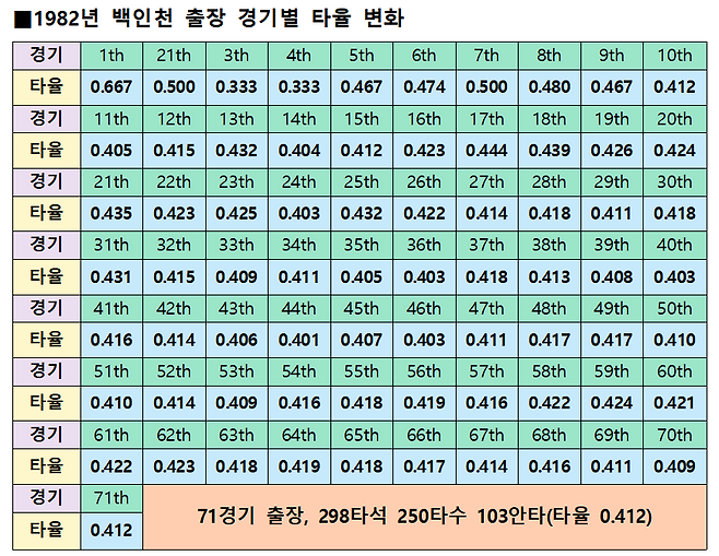 백인천의 시즌 최종 타율은 0.412. 이렇게 해서 KBO 역사상 가장 높은 타율이자 유일한 4할 타율이 탄생했다.