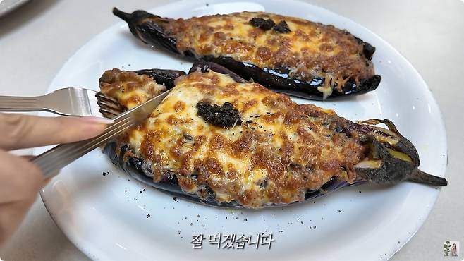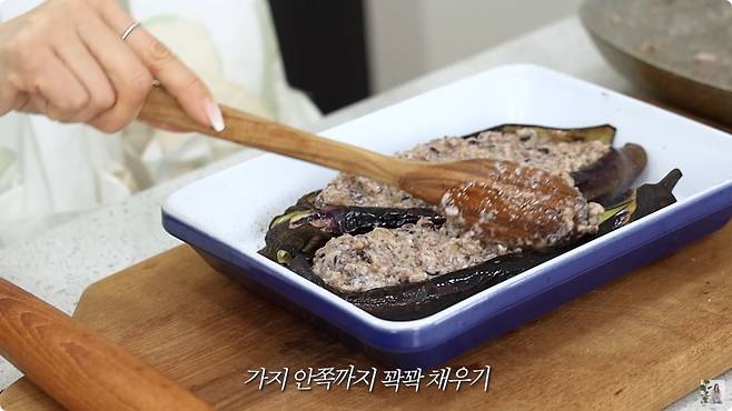 레시피는 단순하다. 가지를 깨끗이 씻은 뒤, 밀대로 누른다. 속에 공기를 빼듯 납작하게 만든다. 열을 가하기 전 단계에서부터 가지를 어떻게 다루는지가 관건이다. 윤은혜는 "최대한 말랑말랑하게 눌러야 맛있다"고 강조했다.