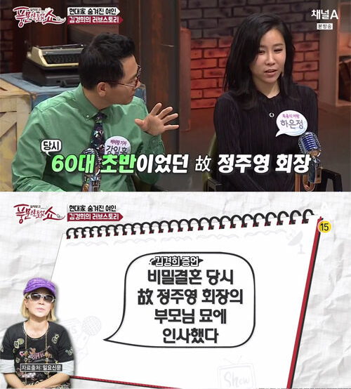 이에 김가연은 "비밀 결혼을 했지만 그래도 화려하게 살지 않았을까?"라고 물었고, “정주영 회장이 한 달에 보내주는 생활비로는 뭔가 부족했다고 해서 김경희의 어머니가 김경희와 두 딸을 먹여 살렸다는 이야기를 했다"고 답했습니다.