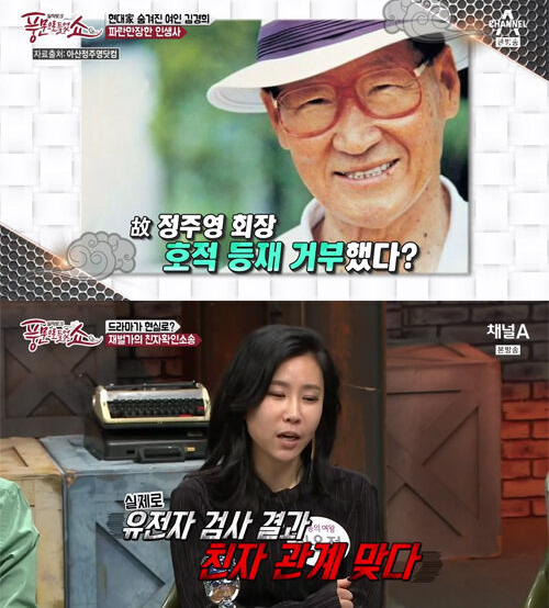 또 "김경희의 증언에 의하면 비밀 결혼을 했을 때 어떻게 했냐? 고 묻자 정주영 회장이 김경희를 데리고 부모님의 무덤에 가서 인사를 했다고 한다. 근데 결혼 후 충격적인 사실이 밝혀진다. 알고 보니 고 정주영 회장이 유부남이었고, 자녀까지 있다는 거를 김경희가 TV를 보고 확인하게 된다"라고 전해 놀라움을 안겼습니다.