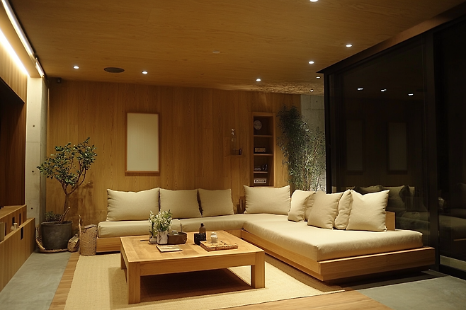 차가운 조명 + 따뜻한 인테리어,