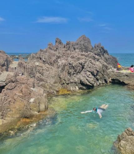 부산과도 크게 멀지 않아 부산근교 스노쿨링 명소로 추천드리는 경주 송대말등대입니다. 송대말등대 스노쿨링 스팟은 구역에 따라서 수심이 낮은 곳과 깊은 곳이 있어 어른부터 아이까지 적당한 수심에 맞춰 물놀이를 즐기기 좋습니다.