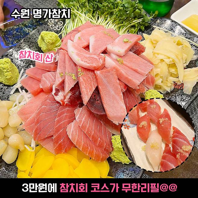23,000원부터 시작하는 참치회 무한리필?! 수원 조원시장에 있는 동네 참치집에는 항상 사람들이 바글바글해요. 그 이유는 바로 가성비 좋은 참치회가 있기 때문이죠 ㅎ_ㅎ 입소문만으로 사람들 몰린 찐 맛집 인정bb