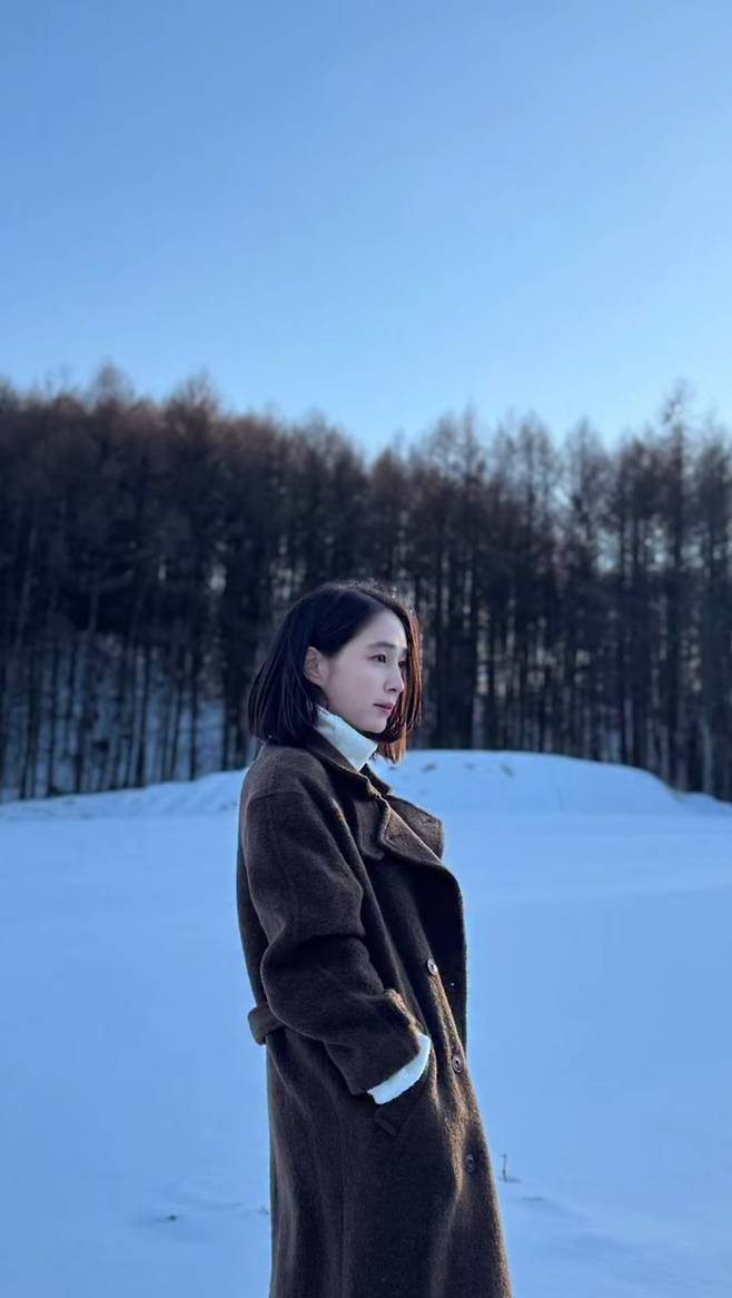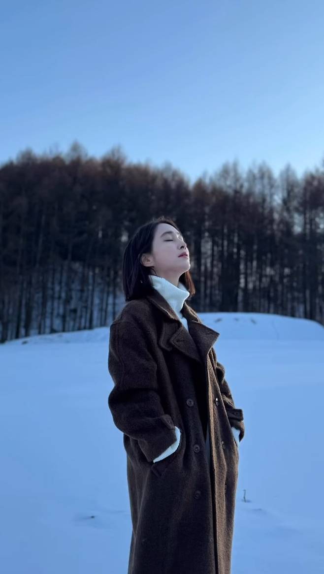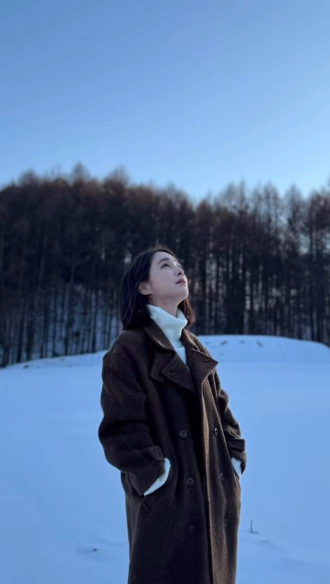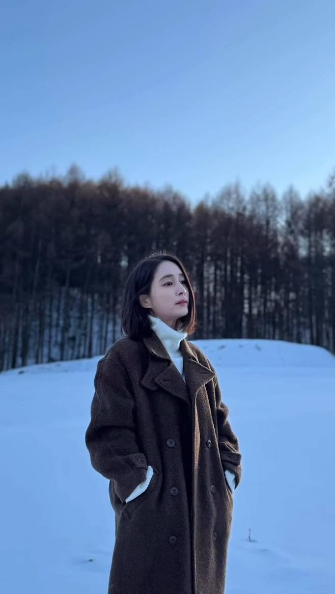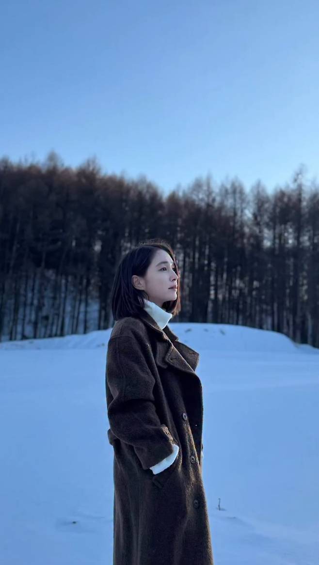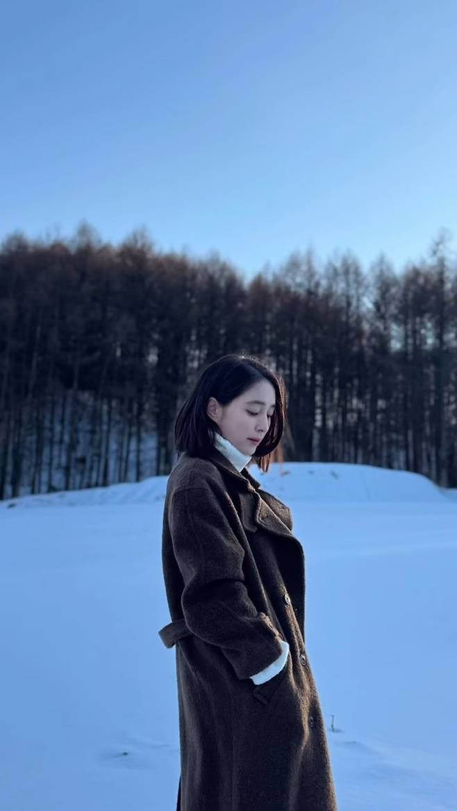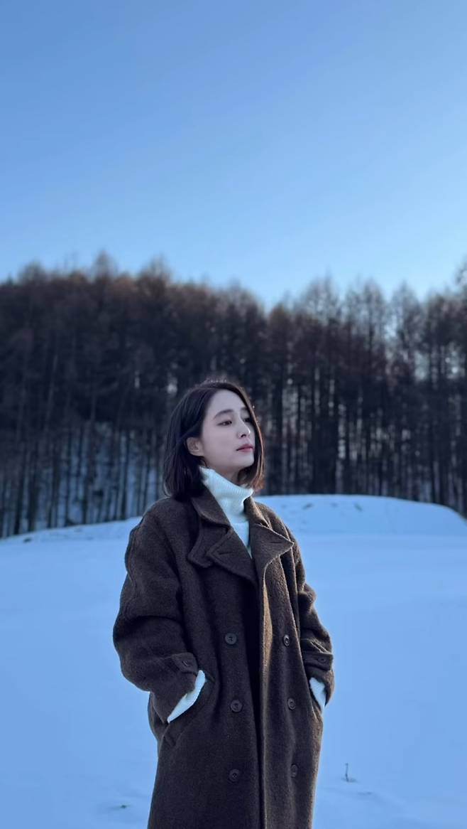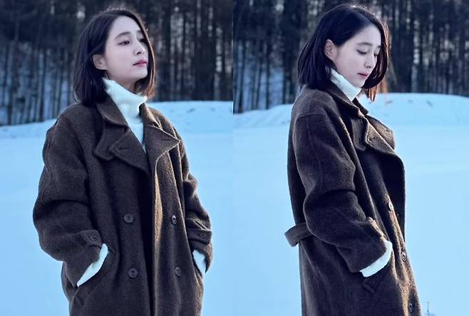 이민정은 한겨울 설경 속에서 완벽한 클래식 코트 스타일링을 선보였다.
