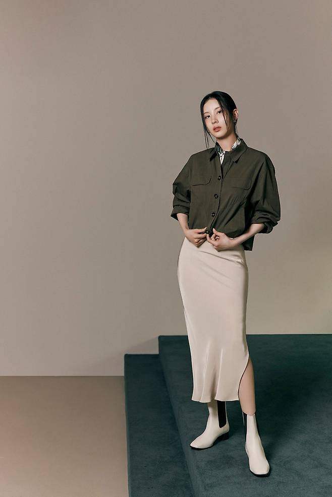 카키 셔츠와 함께 미모를 뽐낸