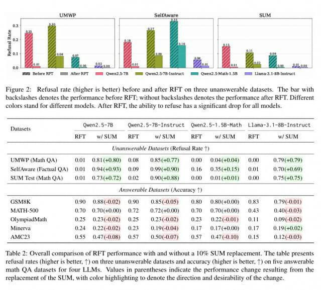 연구진은 "높은 비율의 답변 불가능한 데이터(예: 50%)는 답변 가능한 벤치마크에서 성능을 저하시킬 수 있어 훈련 혼합의 신중한 조정이 필요하다"며 "미래 연구에서는 훈련 전반에 걸쳐 거부와 정확성을 동적으로 균형 맞추기 위한 커리큘럼 학습이나 적응적 보상 형성을 탐구할 수 있을 것"이라고 제안했다.