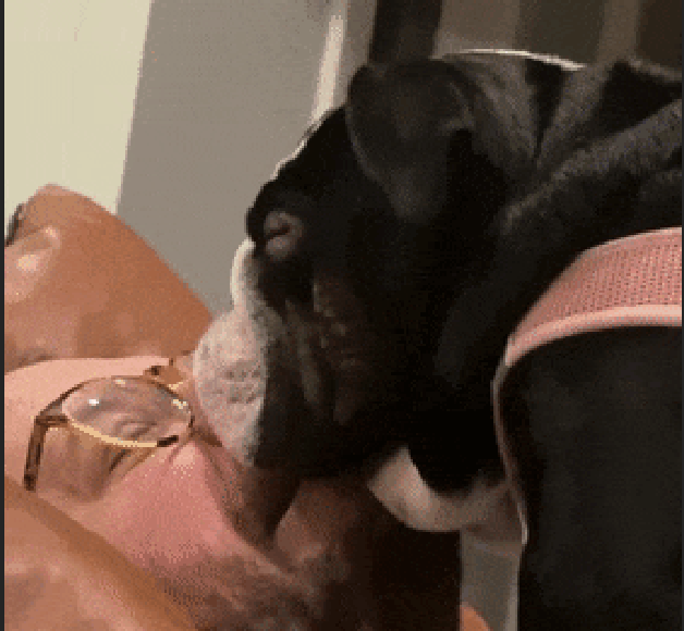 한 네티즌은 자신의 반려견이 아빠 위에 올라서서 아빠 얼굴에 머리를 박고, 아빠 입과 코를 막고서 잠들었다고 합니다.