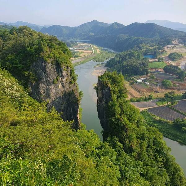 높이 70m에 달하는 웅장한 바위가 맑은 강물과 어우러져 장관을 이루고 있는데요.