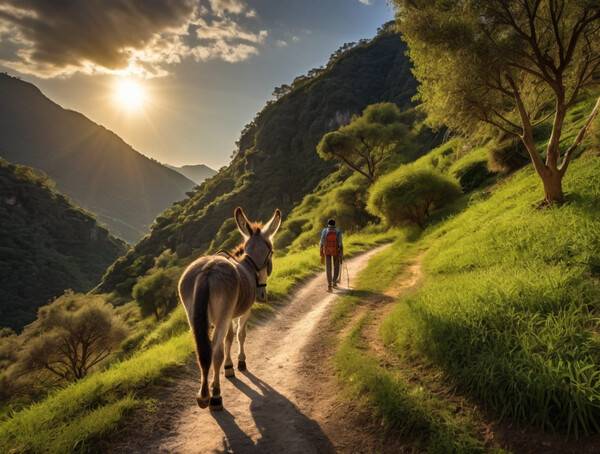 당나귀 등에서 즐기는 산과 계곡의 풍경