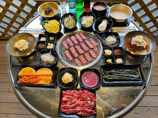 특히 연탄에 직접 구운 살치살과 함께 먹는 된장찌개는 이곳의 베스트 메뉴로, 고소하면서도 담백한 맛이 일품입니다. 푸짐한 냉면과 시원한 복분자주 또한 여행의 피로를 씻어주기에 충분하죠.
